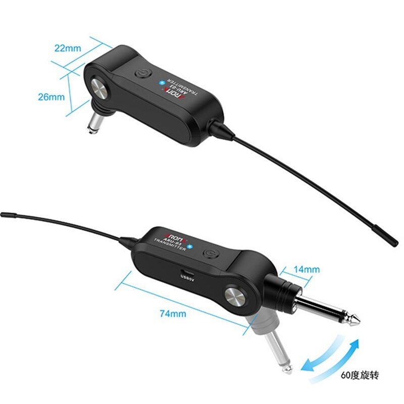 AROMA ARU-03 UHF sistema de transmisión de Audio inalámbrico transmisor-receptor con batería de litio recargable integrada para guitarra o bajo.